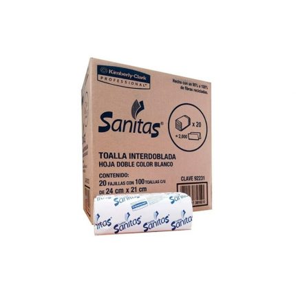 Toalla Interdoblada Sanitas, 20 paquetes 100 piezas