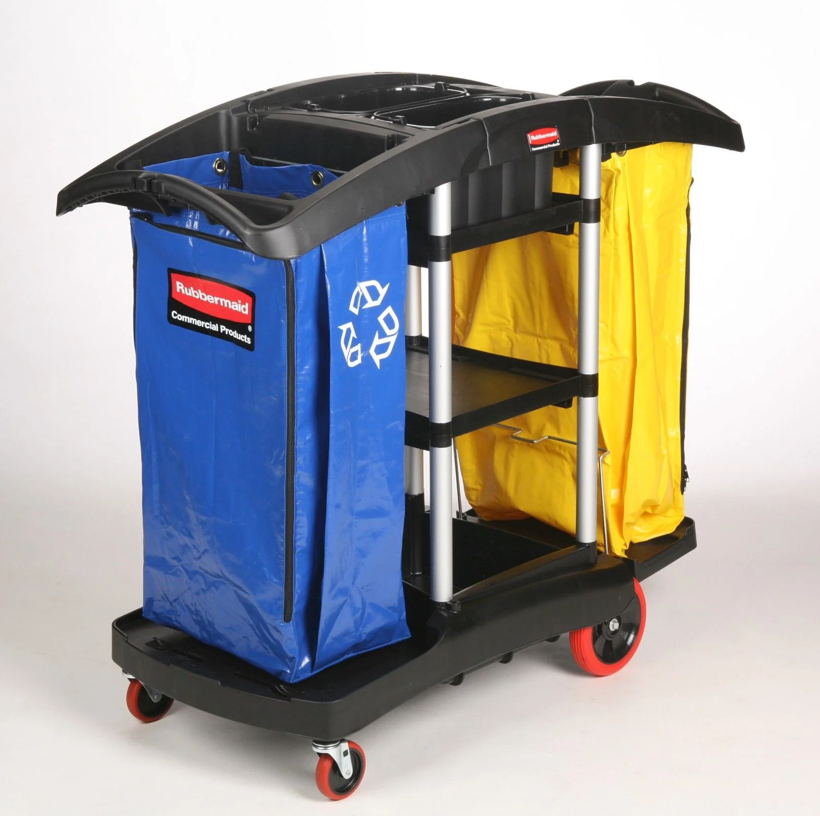Diseñado para optimizar la clasificación de múltiples flujos de recolección, este carrito de limpieza con doble bolsa de vinilo de 134 galones mejora la eficiencia operativa en entornos profesionales. Ofrece mayor capacidad de almacenamiento en un formato compacto, facilitando el transporte de suministros, residuos, reciclaje o ropa de cama con menor esfuerzo y mayor productividad.